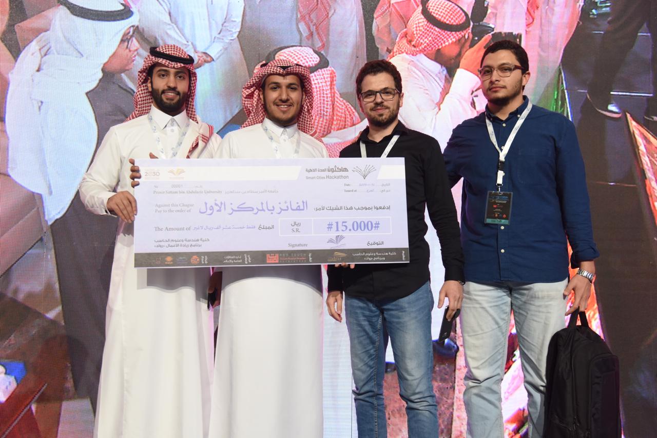 اختتمت فعاليات هاكثون المدن الذكية في جامعة الأمير سطام بنعبدالعزيز في محافظة الخرج حيث توج معالي مدير الجامعة أ.د. عبدالعزيز بن عبدالله الحامد الثلاثفرق الفائزة بالمراكز الأولى من بين 64 فرقة مشاركة جاء ذلك خلالعدد من المراحل حيث تم ترشيح ٨ مجموعات للتقييم النهائي أماملجنة التحكيم ثم أعلنت النتائج بفوز فريق BLE بالمركز الأول الذيحصل على جائزة مقدارها ١٥.٠٠٠ ريال والذي طور فكرة تطبيق مشاركة السيارة مع الآخرين إلىاستعمال هذا التطبيق لمشاركة الدراجات الهوائية والعربات والسيارات بين المستخدمين بطريقة سهلةومميزة كما حقق المركز الثاني فريق ( كنف ) الذي حصل على جائزة مقدارها ١٠.٠٠٠ ريال بفكرة مشروعيخدم الشركات الأمنية والدفاع المدني والقطاع الخاص حيث تقوم فكرة هذا المشروع على حساب عددالأشخاص في المبنى من خلال بوابة الدخول والخروج وفي حال حدوث حرائق أو مشاكل أمنية يمكنتقدير عدد الأفراد داخل المبنى بكل سرعة وسهولة كما حقق المركز الثالث وجائزة الـ 5000 ريال فريقsmart Uni عن مشروعه الذي تدور فكرته لتطوير بيئة الجامعة لتصبح جامعة ذكية من خلال توفيرالخدمات التقنية للطالب الجامعي ، وقد حضي جميع المشاركين والمشاركات بدعم متواصل منمتخصصين خلال الثلاث قدموا الاستشارات والتوجيه والدعم مما ساعدهم على اجتياز الكثير من العقباتوتجويد أعمالهم .يذكر أن عدد المشاركين في الهاكثون حوالي ٥٠٠ مشارك ومشاركة، تم قبول ٣٥٠ فكرة و تم إقامةمجموعة من الفعاليات المصاحبة ممثلة في تقديم عدد من الورش التدريبية والمحاضرات.وقدم معالي مدير الجامعة الأستاذ الدكتور عبدالعزيز بن عبدالله الحامد كلمة بهذه المناسبة ذكر فيهااعتزازه وتقديره لجميع المشاركين والمشاركات في هذا الهاكثون مؤكداً حرص الجامعة على توفير البيئةالمحفزة التي تساعد على إبراز مواهب الطلاب وقدراتهم والأخذ بيدهم للإبداع والتميز ،وأوضح الحامدأن الطلاب قد اكتسبوا من مشاركتهم إضافة إلى ما قدموه من إبداعات ومشاريع خلاقة تساهم في إيجادمدن ذكية العديد من المهارات الأخرى من أبرزها العمل ضمن الفريق والعمل تحت الضغط وتعلم فنونالقيادة ،ونحن في الجامعة ماضون في تنفيذ مثل هذه البرامج والفعاليات التي تأتي متكاملة ومحققة لرؤيةالمملكة الطموحة 2030.