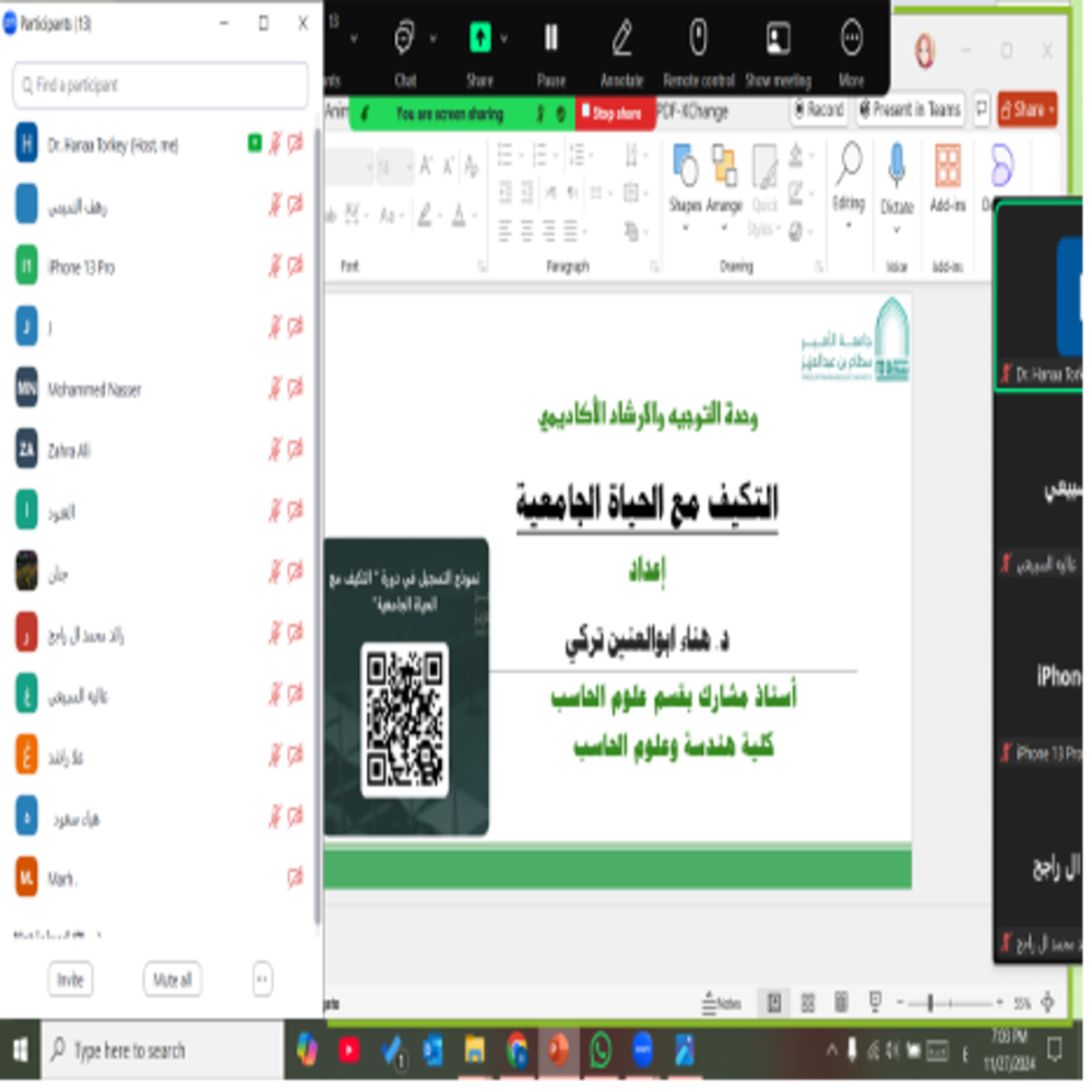 نظّمت وحدة التوجيه والإرشاد الأكاديمي بالتعاون مع مجال تنمية المهارات المهنية بوحدة الخريجين وتحت إشراف وكالة الشؤون الأكاديمية بكلية هندسة وعلوم الحاسب محاضرة افتراضية بعنوان "التكيف مع الحياة الجامعية".