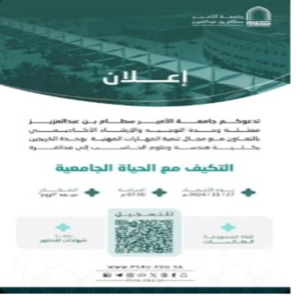 وهدفت إلى تعريف الطلاب والطالبات بخصائص الحياة الجامعية وآليات التكيف معها لتحقيق أقصى استفادة من تجربتهم الأكاديمية.