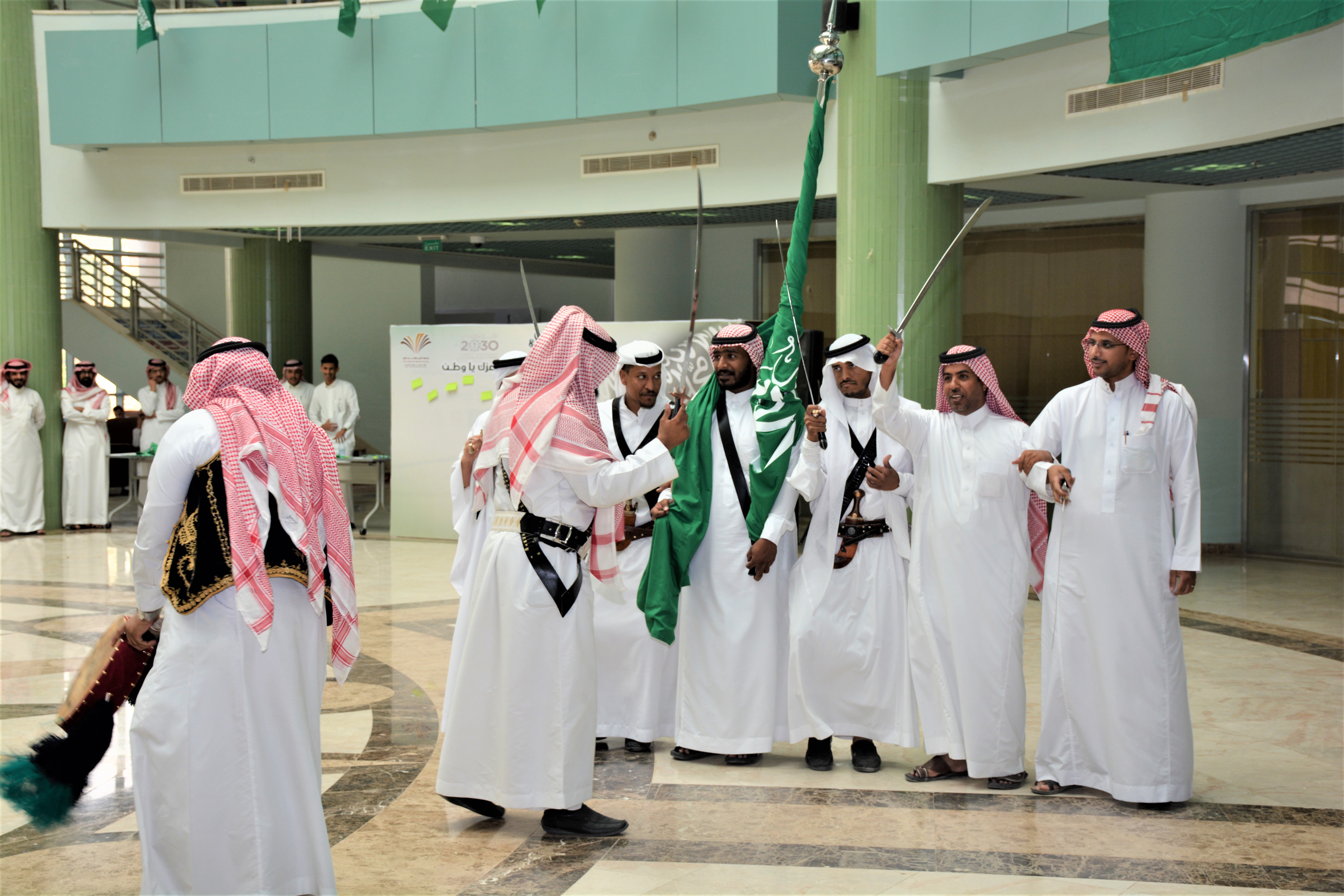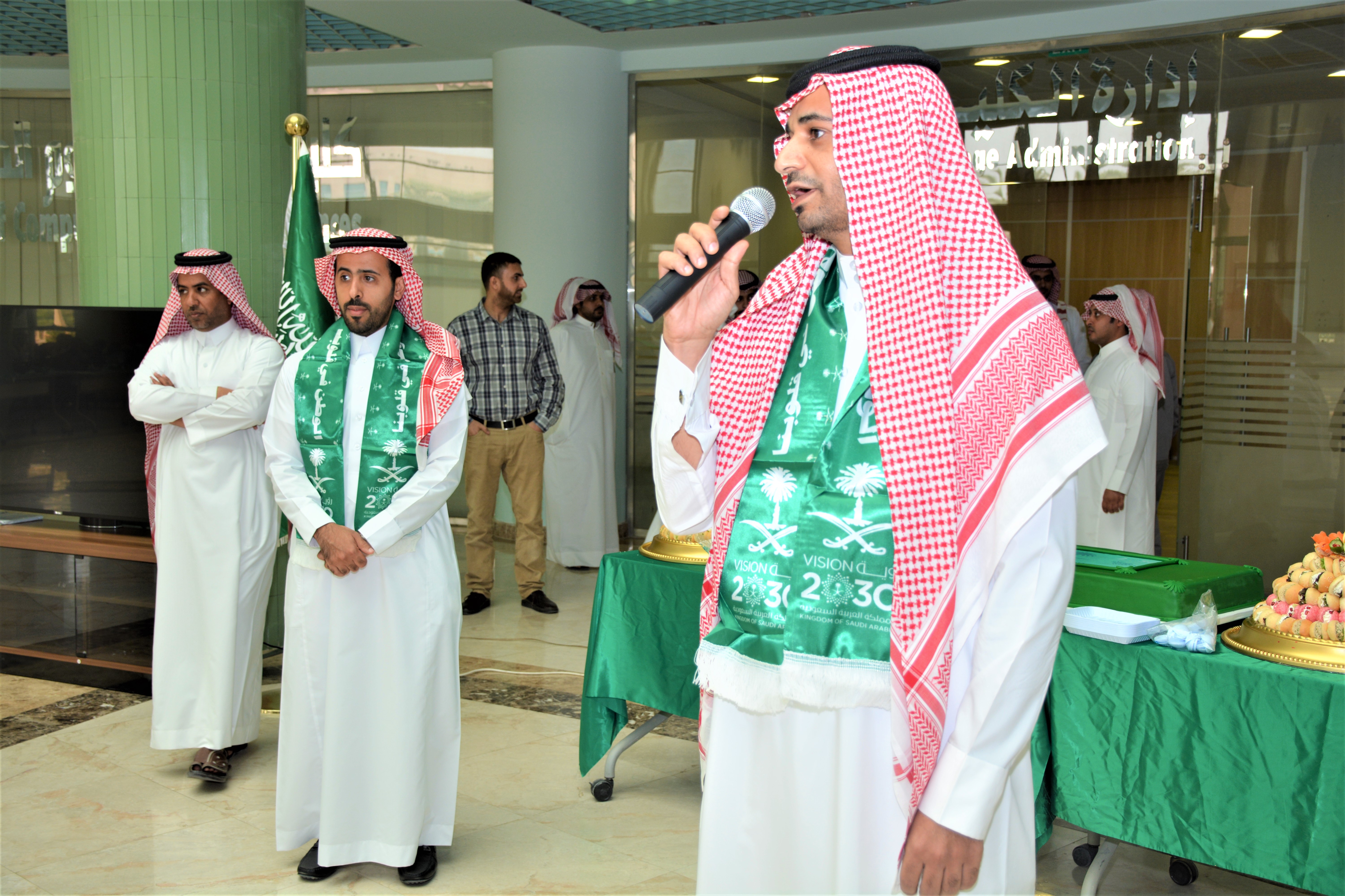 حيث شمل الحفل عدد من الفعاليات ذات العلاقة والقى خلالها سعادة عميد الكلية كلمة بهذه المناسبة هنأ بها القيادة والشعب بهذا اليوم العزيز على قلوبنا، كما تخلل الحفل إقامة العرضة السعودية والقاء القصائد في حب الوطن.