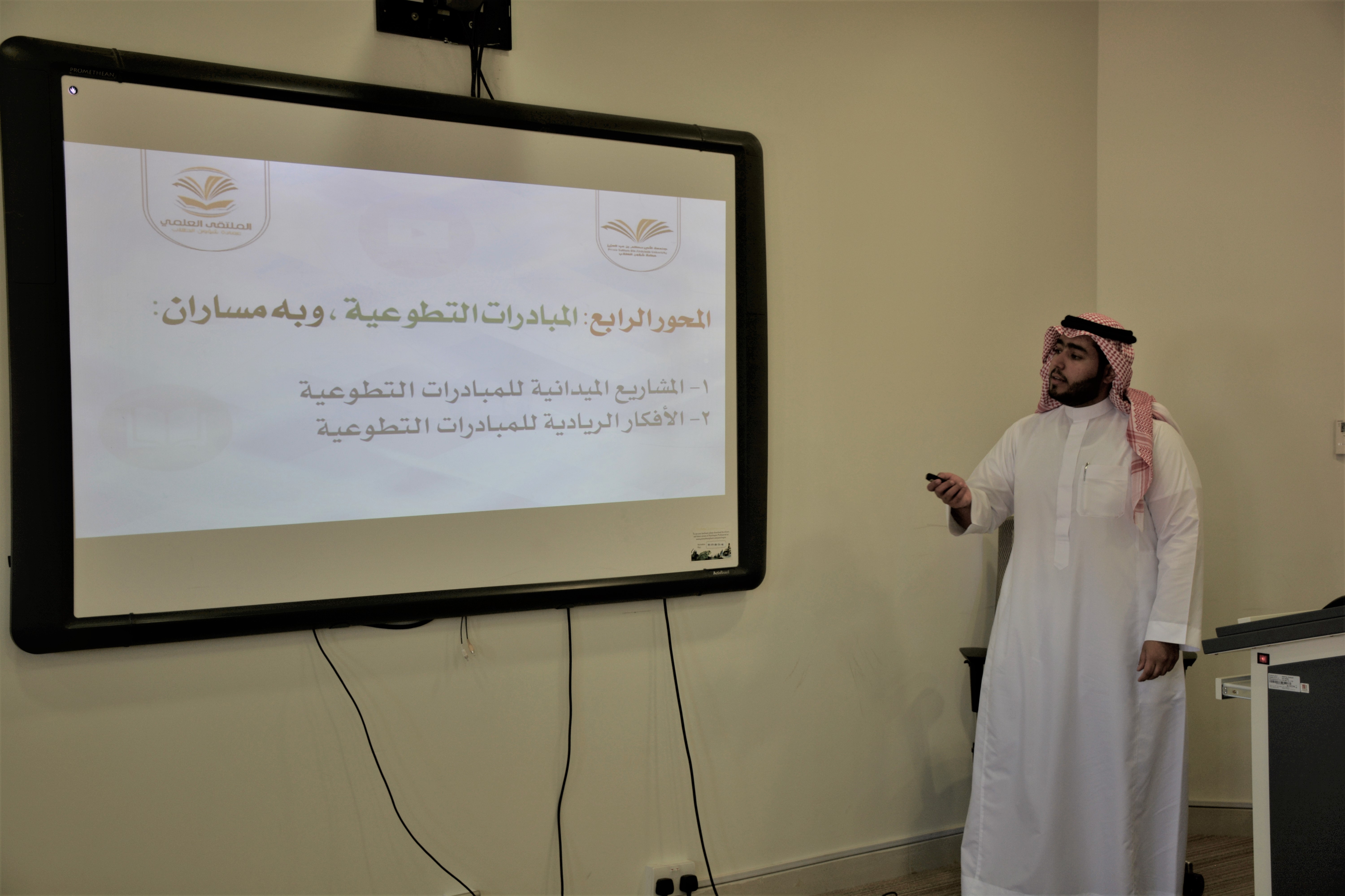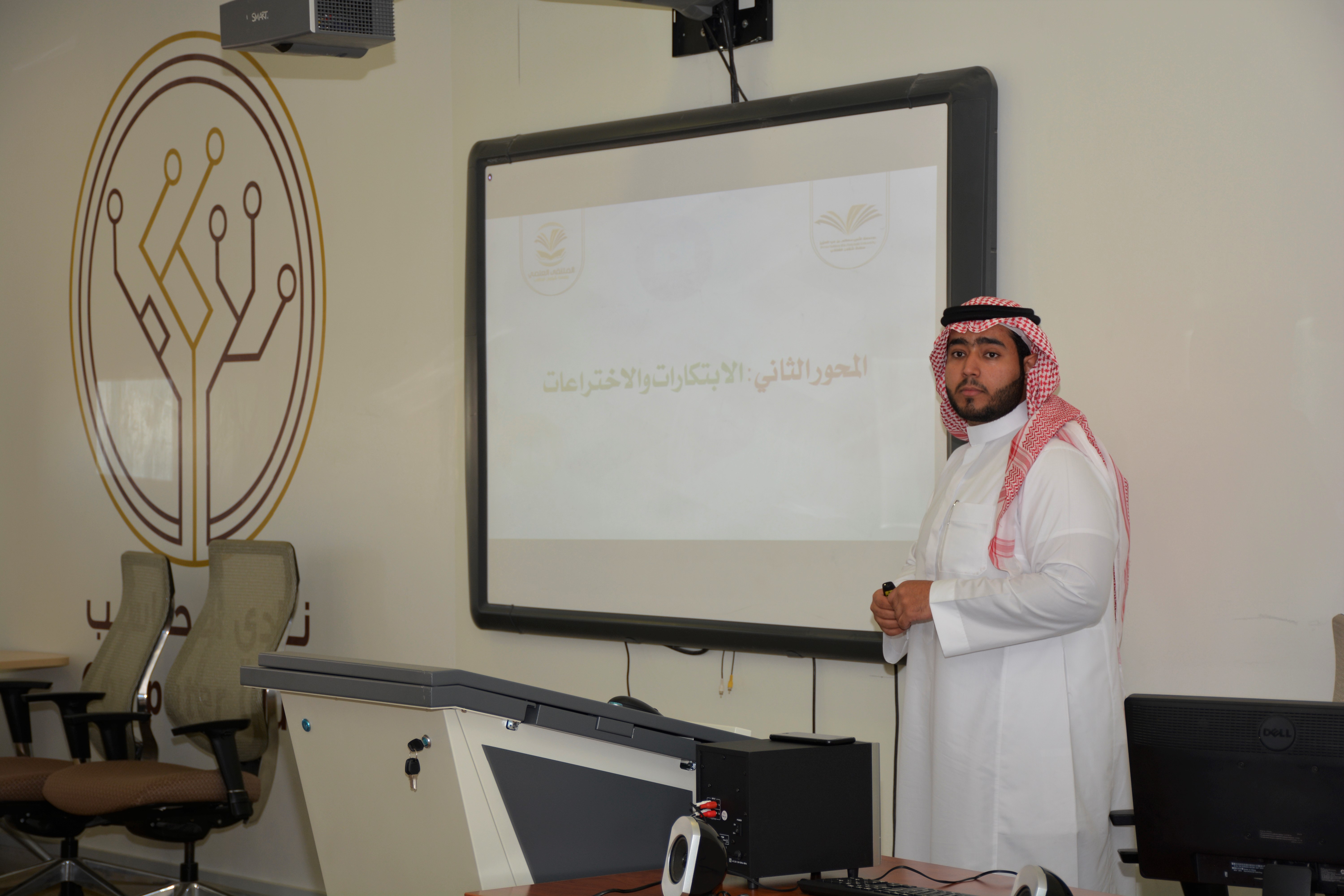 نظمت وحدة الأنشطة الطلابية بالكلية اللقاء التعريفي للملتقى العلمي الثالث بالجامعة وذلك يوم الثلاثاء الموافق 19/04/1440هـ الموافق لـ 27/11/2018م بمقر نادي الابداع الرقمي بالكلية وذلك ضمن استعداد الكلية للملتقى العلمي الثالث.وابتدأ اللقاء بالحديث عن رؤية وأهداف الملتقى والمحاور الأساسية والفرعية وطريقة المشاركة فيها وعرض الجوائز الموزعة على كل محور.تم بعد ذلك ايضاح الهيكلة التنسيقي للملتقى العلمي في الكلية وطريقة التواصل مع المنسقين، حيث تم وضع منسق لكل محور وهم:١- منسق الملتقى العلمي بالكلية الأستاذ عبد الله بن عبد العزيز البنيان٢- محور الأبحاث العلمية - منسق المحور الأستاذ عبد الرحمن بن عبد الله العبد الجبار٣- محور الابتكارات والاختراعات - منسق المحور الدكتور ياسين صالح بوترعه٤- محور ريادة الأعمال - منسق المحور الأستاذ عبد الرحمن بن سعود السيف٥- محور الأعمال التطوعية - منسق المحور الاستاذ شباب بن علي الغامدي٦ - محور مسابقة الأفلام التوعوية - منسق المحور الدكتور بلحسن عبد الحميد العكروتوفي نهاية اللقاء تقدمت عمادة الكلية بالشكر الجزيل لجميع المنظمين من المجلس الطلابي وأعضاء هيئة التدريس لحرصهم على نجاح اللقاء وظهوره بصورة مميزة.
