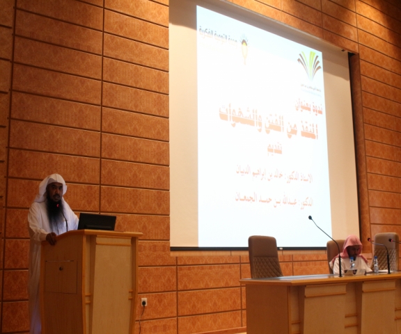 واستهل الدكتور خالد حديثه بتعريف الفتن والشهوات ، و تطرق في ثنايا حديثه إلى الأسباب والعوامل التي تؤدي إلى زيادة الشهوات لدى الإنسان ، و وختم حديثه بالكلام عن العوامل المنقذة من الشهوات.