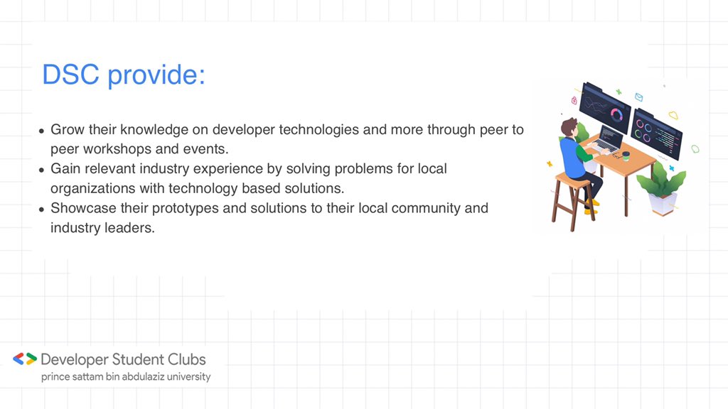 إفتتحت كلية هندسة وعلوم الحاسب بجامعة الأمير سطام بن عبدالعزيز لشطر الطالبات نادي (الطلبة المطورين) والذي تدعمه شركة Google العالمية , حيث يتلخص الدور الرئيسي لأعمال نادي الطلبة المطورين بأنه مجموعات مجتمعية للطلاب من أي خلفية أكاديمية خلال فترة ومرحلة الدراسة الجامعية أو الدراسات العليا. ومن خلال الإنضمام إلى النادي يقوم الطلاب ببناء شبكتهم المهنية والشخصية والوصول إلى موارد مطوري البرامج ، والعمل معاً لبناء حلول للمشاكل المحلية في بيئة تعليمية من نظير إلى نظير مباشر فيما بينهما. ويهدف النادي لمساعدة الطلاب على سد الفجوة بين الجانب النظري والعملي وتمكينهم للتأثير على مجتمعنا من خلال إثراءاتهم التقنية والتكنولوجيا لتعزيز المفاهيم المكتسبة عن طريق العمل على حل المشاكل التي تواجههم بأساليب تقنية لعصر حاسوبي ذكي. ويوفر نادي الطلبة المطورين بيئة تقنية إجتماعية تسعى لتحقيق مشاريع تخدم المجتمع وتخدم المشاريع المحلية على التحول التقني وتقديم التسهيلات من خلال التكنولوجيا في سبيل تحقيق الطلاب مطورين محترفين يستفيد الوطن منهم , مع تقديم فرصة للطلاب للمشاركة في عدة مجالات تقنية منها (المسابقات البرمجية العالمية والتحديات التي تهدف لتطوير حلول المشاكل الواقعية في المجتمع - تقديم ورش عمل في بعض اللقاءات التي تنظمها مجتمعات- Google تقديم شهادات لجميع أعضاء نادي الطلبة المطورين المتفاعلين). ويعرض النادي جميع فعالياته ومستجداته خلال العام الدراسي الجامعي الجديد 1442هـ عبر قنوات التواصل الرسمية له وهي على النحو التالي :- 1 صفحة النادي الرسمية على برنامج التواصل الإجتماعي التويتر PSAU_DSC@2 الصفحة الرسمية للنادي في موقع مجتمع Google للطلبة المطورين https://dsc.community.dev/prince-sattam-bin-abdulaziz-university حيث يتكون من قائدة ومؤوسسة النادي الطالبة / لمى عبدالله الرويتع من كلية هندسة وعلوم الحاسب" شطر الطالبات" و المستشارة التقنية الدكتورة / عائشة آدم عبد الله " مساعدة وكيلة الكلية لشطر الطالبات. يذكر أن النادي يسعى وفق رؤيته وأهدافه إلى إستثمار طاقات الطلاب وابداعاتهم ورعايتها بما يصقل مواهبهم وهواياتهم وتبادل الخبرات فيما بينهم لخلق بيئة طلابية تنافسية وفعالة وجاذبة من شأنها تعزز انتماء الطلاب وولائهم للجامعة والوطن بتكوين كوادر مؤهلة للمنافسة في الفعاليات والمسابقات ذات الصلة داخل وخارج المملكة , ويتطلع في هذه السنة الجامعية إلى نهج التركيزعلى الورشات العملية لتنمية قدرات الطالب التقنية وتشجيعه على الإبداع والإبتكار من خلال التعاون وإستقطاب خبراء الشركات لإقامة بعض الورشات والمحاضرات لإكتساب الطلاب المهارات التقنية اللازمة .