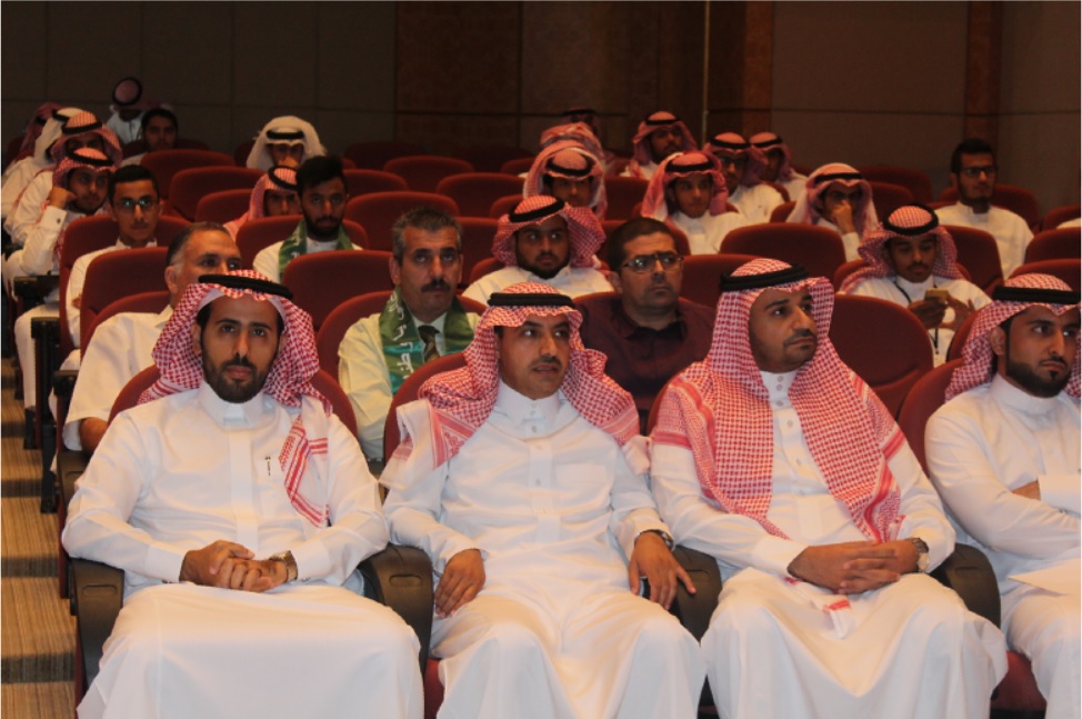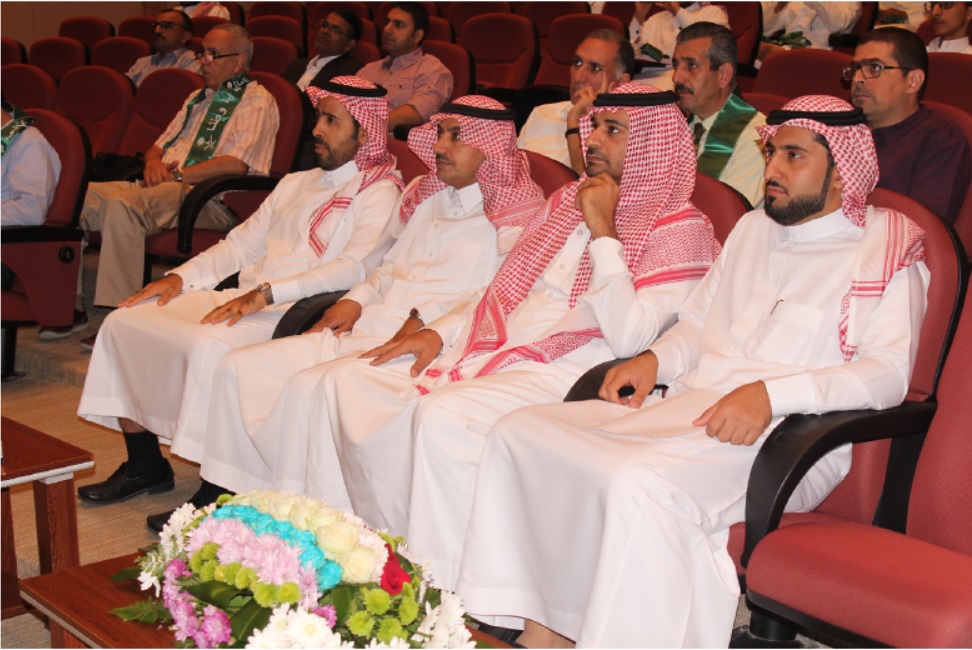 بعد ذلك تفضل سعادة الدكتور عميد الكلية بإلقاء كلمة رحب فيها بالحضور وقدم خالص التهنئة بمناسبة اليوم الوطني والذي نستذكر من خلاله المجد التليد ونقلب صفحاته المشرقة ونحن ننعم فيه بمسيرة تنموية حديثة من خلال خطط وطنية طموحة ولعل من أهمها رؤية المملكة 2030. ثم قدم سعادته كل التحية والتقدير للجنود الأبطال الذين يذودون بأرواحهم فداءً لدينهم ووطنهم داعياً الله عز وجل أن يرحم الشهداء وأن يمن على المصابين بالشفاء العاجل. وأختتم العميد كلمته متمنياً المزيد من التقدم والتنمية والازدهار للوطن وأن يديم الله علينا نعمة الأمن والأمان.