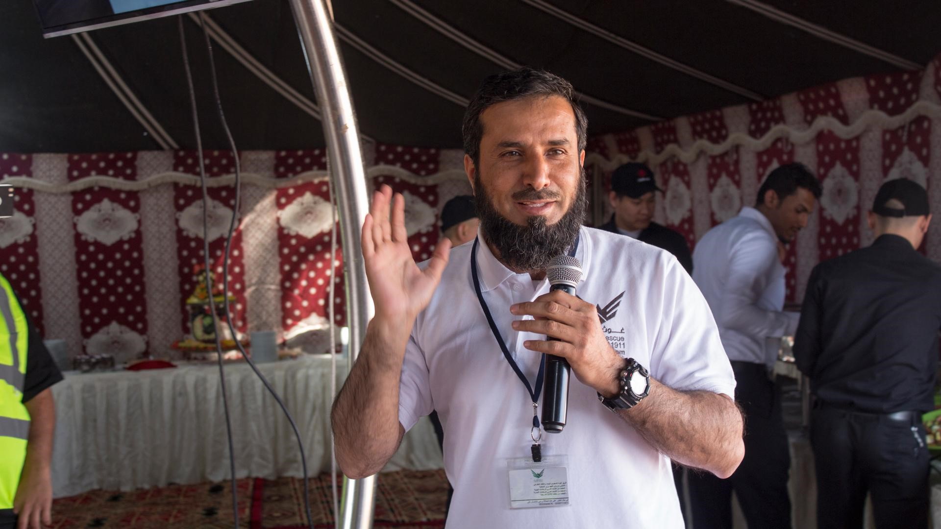 بعد ذلك كلمة مؤسس وقائد فريق غوث الكابتن منصور العاطفي حيث شكر فيها الجامعة على هذه المبادرة، وكمساهمة من فريق غوث للعمل التطوعي تم منح ٥٠ مقعد مجاني لطلاب الجامعة في إحدى الدورات التي يقدمها الفريق (إسعافات أولية-إدارة الكوارث والأزمات-السلامة في المنشآت وغيرها). بعد ذلك تناول الجميع طعام الغداء وبعدها بدأت فعاليات المخيم بعرض سيناريو من فريق غوث لإسعاف مصابين في حادث سير ونقلهم لمراكز الرعاية وبعدها استعراض للطيران الشراعي.