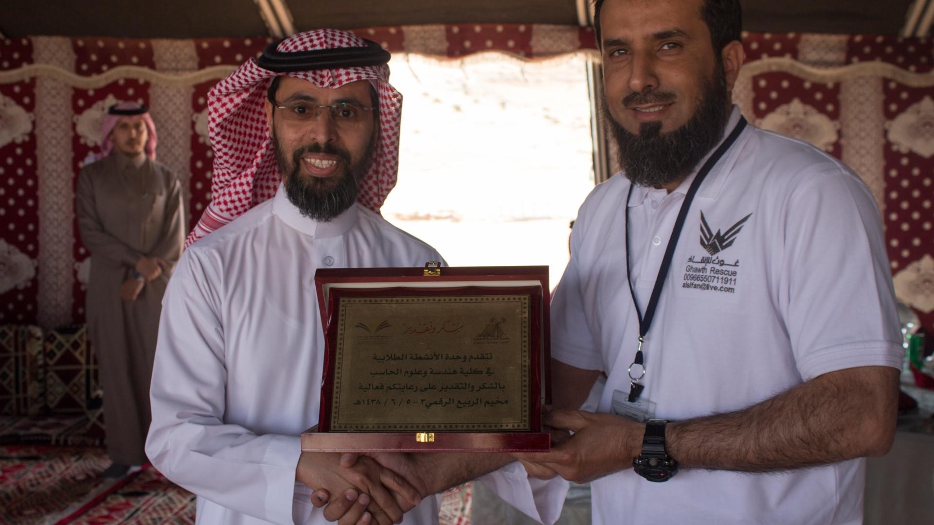 اختتمت فعاليات مخيم الربيع الرقمي الذي نظمته وحدة الأنشطة الطلابية بكلية هندسة وعلوم الحاسب في الفترة من ٣-٥\٦\١٤٣٨هـ، هذا وقد انطلقت فعاليات المخيم في يومه الأول بحضور سعادة وكيل الجامعة الدكتور عبد الله بن عبد الله الجمعه وسعادة عميد الكلية الدكتور محمد بن بطاح الشمري، وعدد من أعضاء هيئة التدريس بالكلية والجامعة، وطلاب الكلية المشاركين في فعاليات المخيم، وكذلك فريق غوث للإنقاذ الذي شارك في فعاليات اليوم الأول. حيث افتتحت فعاليات المخيم بمقدمة لقائد المخيم الطالب عبد الله السويلم شكر فيها إدارة الكلية والجامعة على دعمهم لتوفير هذا المخيم لطلاب الكلية وطلب السويلم من كل المشاركين في المخيم التعاون لنجاح فعاليات المخيم. بعد ذلك قدم الطالب عبد العزيز العاتي أنشودة ترحيبية، ثم تلتها كلمة ترحيبية لسعادة وكيل الكلية ورئيس اللجنة العامة للأنشطة الطلابية الدكتور عبد العزيز بن عبد الله الداعج رحب فيها بالحضور والطلاب المشاركين في المخيم، كما بين أن الاستعداد للمخيم بدأ منذ بداية العام الدراسي لإعداد برنامج يليق بطلاب الكلية وتم على ضوء ذلك البحث والتفاوض مع عدد من الجهات للمشاركة في رعاية المخيم. وأوضح وكيل الكلية الدكتور عبد العزيز الداعج أن هذا المخيم يندرج ضمن رؤية الكلية في تحفيز الطلاب على ممارسة الأنشطة والارتقاء بمعارفهم، مشيراً إلى أهمية هذا المخيم المعرفي والترفيهي في إثراء العملية التعليمية. وفي نهاية كلمته تقدم بالشكر الجزيل لمشرف وحدة الأنشطة الطلابية المبدع الأستاذ عبد الله بن عبد العزيز البنيان على جهوده الكبيرة في الإعداد والتجهيز والتنسيق للارتقاء بمستوى المخيم حتى يلبي حاجة طلاب الكلية.
