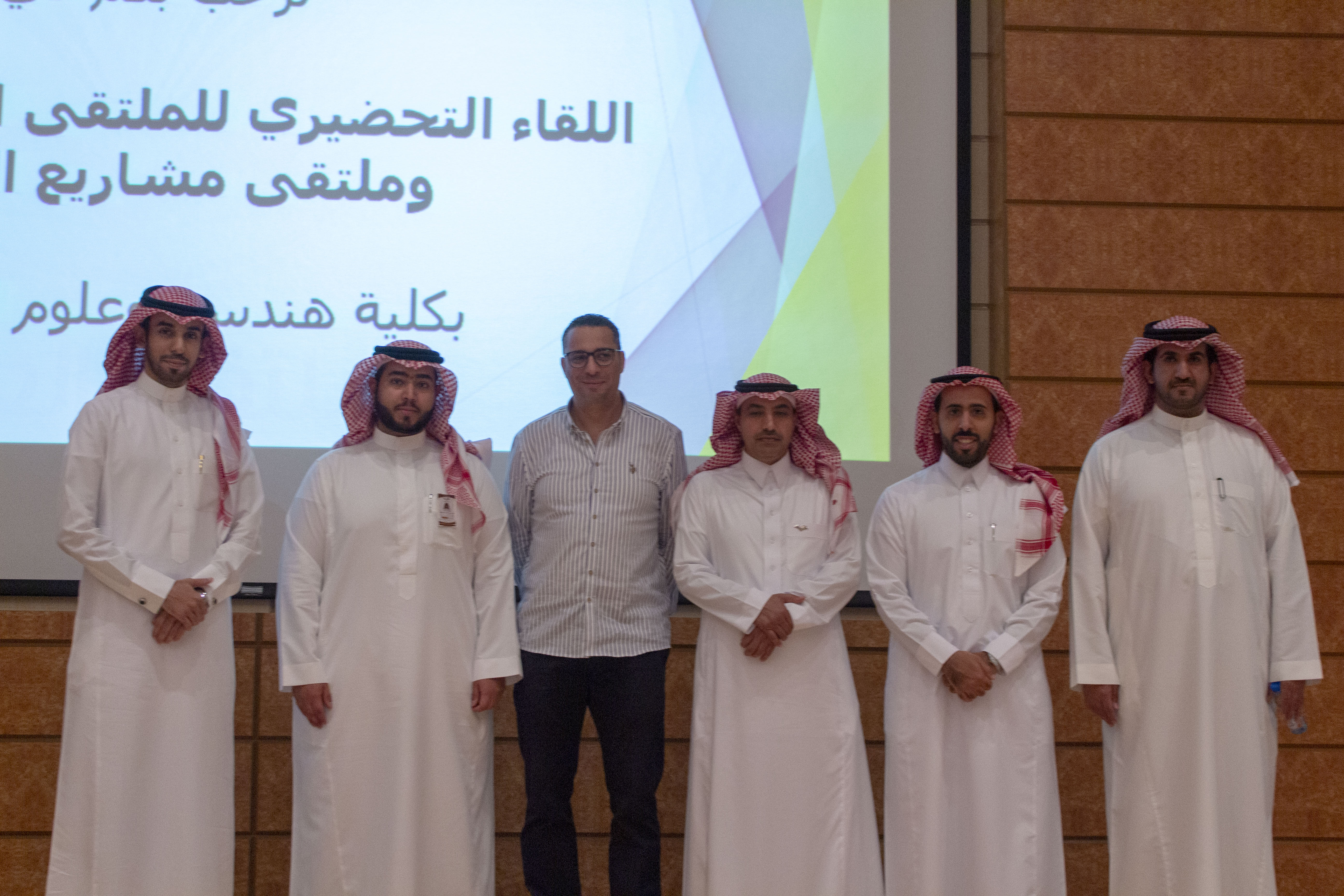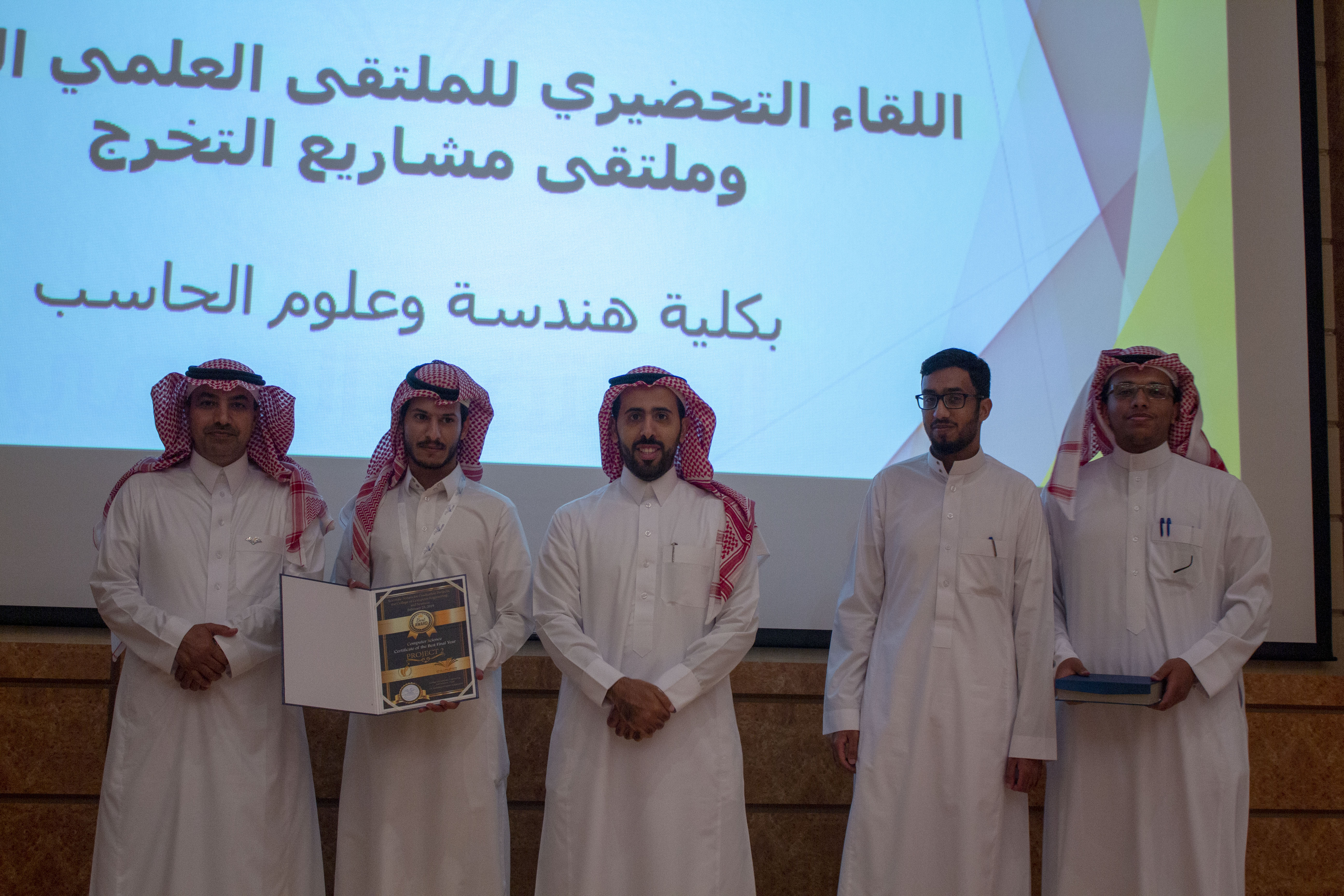 أقامت كلية هندسة وعلوم الحاسب يوم الاثنين 20/06/ ١٤٤٠هـ اللقاء التحضيري للملتقى العلمي الثالث وملتقى مشاريع التخرج وذلك برعاية سعادة عميد الكلية الدكتور محمد بن بطاح الشمري وحضور كل من سعادة الدكتور ثلاب بن عبد الله الشكرة عميد شؤون الطلاب وسعادة الدكتور خالد بن ناصر العاصم وكيل عمادة شؤون الطلاب للشؤون الفنية وسعادة الدكتور / وسعادة الدكتور عبد العزيز بن عبد الله الداعج وكيل الكلية للشؤون التعليمية والأكاديمية، وسعادة الاستاذ عمر بن عثمان العبد الله، مدير إدارة عمادة شؤون الطلاب وأمين عام الملتقى العلمي الثالث، وجمع غفير من أعضاء هيئة التدريس والطلاب.واستهل اللقاء بآيات بينات من الذكر الحكيم بعد الترحيب بالحضور الكريم. تلى ذلك عرض لأعمال الملتقى العلمي بالكلية ومشاريع التخرج ومن ثم تفضل سعادة عميد شؤون الطلاب بإلقاء كلمة نوهَ فيها بجهود الكلية في إنجاح الملتقى العلمي وملتقى مشاريع التخرج وحث الطلاب على المزيد من العطاء والإبداع. وفي ختام اللقاء تم توزيع شهادات الشكر والتقدير والجوائز للطلاب الفائزين بالمراكز الأولى.وصاحب الفعالية معرض في بهو الكلية بالأعمال المشاركة في الملتقى العلمي الثالث وملتقى مشاريع التخرج حيث عرض الطلاب اعمالهم في شتى محاور الملتقى ومشاريع التخرج وتفاعلوا مع أسئلة واستفسارات الحضور الكريم.