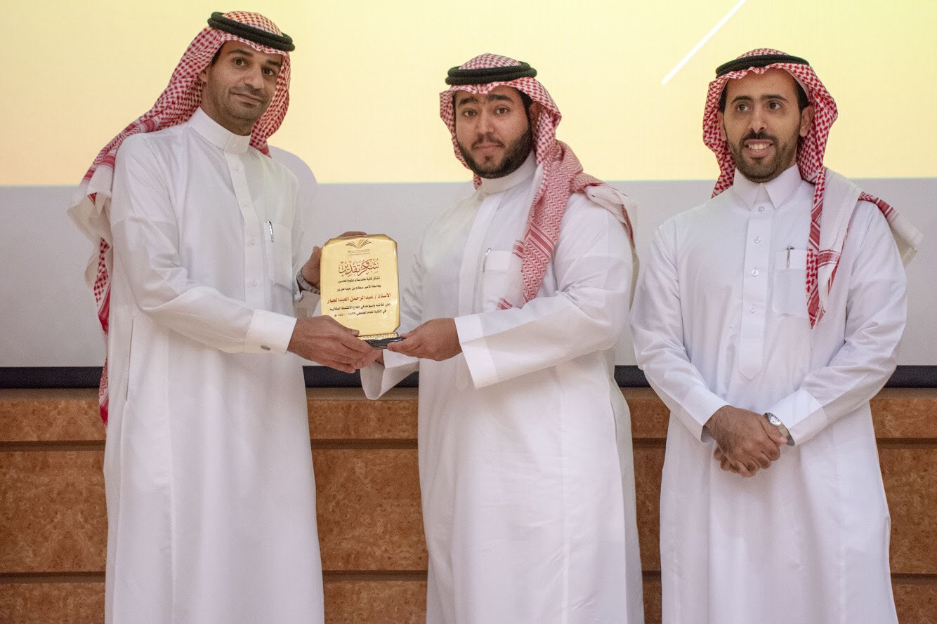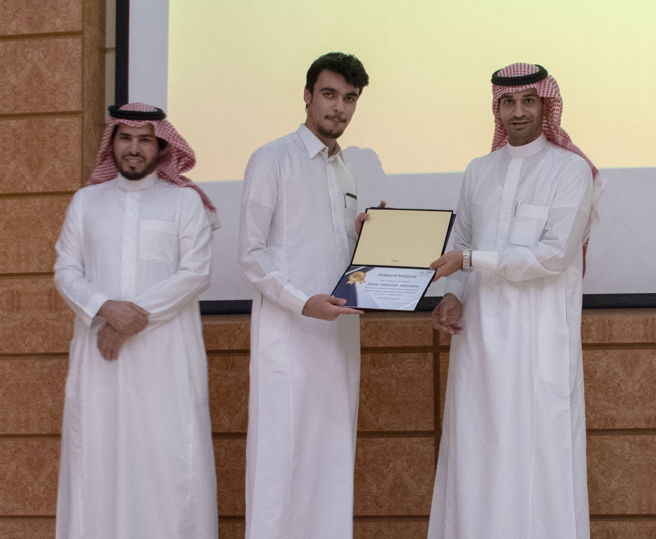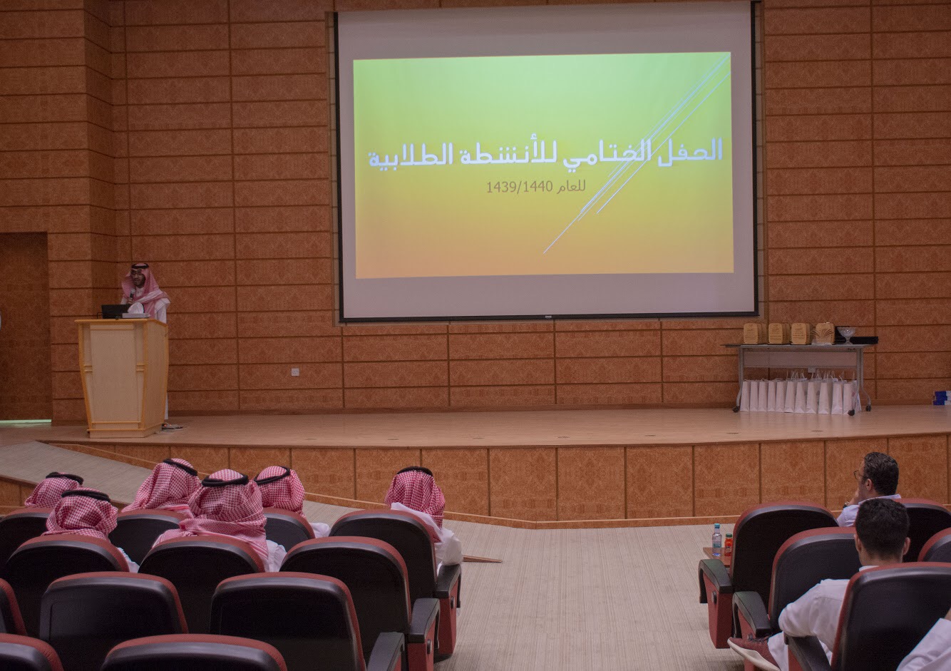 نظمت كلية هندسة وعلوم الحاسب حفل ختام الأنشطة الطلابية لهذا العام حيث تم من خلالها عرض بعض الإنجازات والنجاحات التي نظمتها الكلية للطلاب من داخل وخارج الكلية. قدم هذا الحفل الطالب عبدالرحمن البكر وكانت البداية بتلاوة كريمة من الطالب عبدالعزيز ثم شهد بعد ذلك عرض مرئي لبعض الإنجازات ثم تقدم مشرف الأنشطة الطلابية للكلية المهندس محمد الخويطر بتقديم كلمة للحضور قدم فيها سياسة الكلية في طرح الأنشطة مضيفاً إلى ذلك الأحصائيات لعدد الفعاليات والأنشطة وعدد المستفيدين من تلك الأنشطة وثنى فيها زملاءه في وحدة الأنشطة الطلابية والطلاب المساهمين وكذلك ادارة الكلية وعمادة شؤون الطلاب. بعد ذلك قدم عميد الكلية كلمته لهذا الحفل شاكراً الجهود المبذوله والمتميزه. بعد ذلك تم التكريم وتوزيع الجوائز والتي تم رعايتها من قبل معهد شبكة آباد.