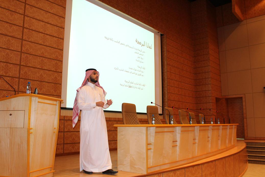 أقامت كلية هندسة وعلوم الحاسب محاضرة بعنوان "البرمجة والتميز في التخصص" قدمها وكيل الكلية للتطوير والجودة الدكتور عبد الإله الوابل يوم الثلاثاء 17 محرم 1438هـ، في البداية تم استعراض أهمية مجال تقنية المعلومات واتجاه الاستثمارات الحكومية نحوه كإنشاء صندوق استثماري لدعم مشاريع تقنية المعلومات بقيمة 100 مليار دولار بالتعاون مع بنك سوفت الياباني. فمثل هذه المبادرات تحتم على خريجي تخصصات الحاسب التمييز لمواكبة المنافسة العالية الناتجة عن الاقبال العالي على التخصص. بعد ذلك استعرضت المحاضرة أهمية البرمجة وعوامل اتقانها وأنها البوابة الرئيسة للتميز من خلال تعلم عدد من المهارات التي لا يستغني عنها طالب الحاسب. واختتمت المحاضرة بنقاش عن عوامل التميز بشكل عام في تخصص الحاسب وربط تلك العوامل بالمهارات المكتسبة من خلال اتقان البرمجة. كما تم السحب على مقعدين لحضور دورة "تطبيقات الحوسبة السحابية في العمل" والمقامة في عمادة خدمة المجتمع والتعليم المستمر.