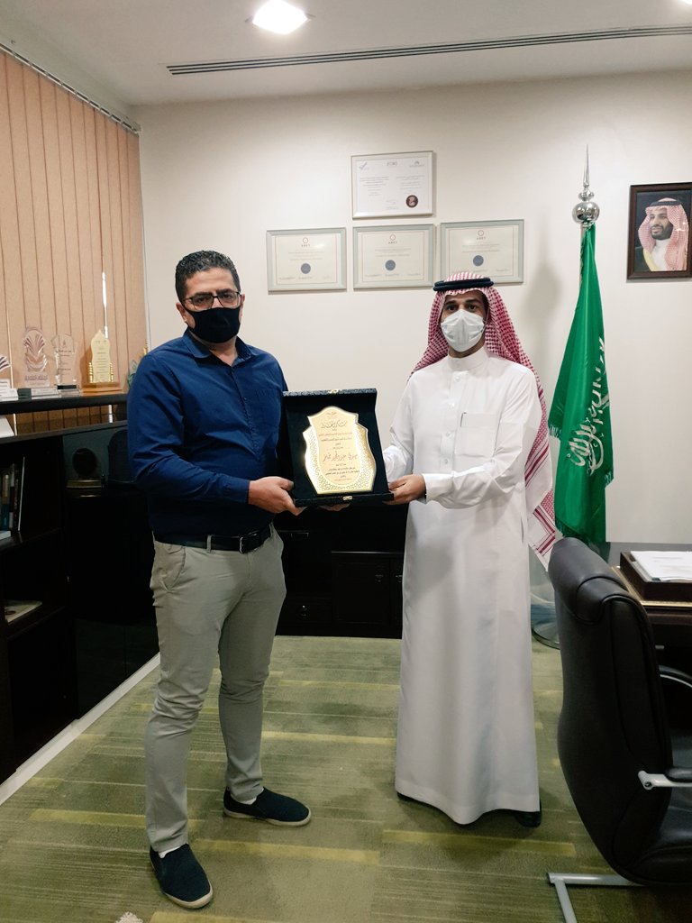 كرم سعادة عميد كلية هندسة وعلوم الحاسب بجامعة الأمير سطام بن عبدالعزيز بالخرج الدكتور محمد بن بطاح الشمري في مكتبه صباح اليوم الثلاثاء عدد من منسوبي الكلية يتقدمهم الدكتور مهدي خماخم "مساعد العميد للشؤون التعليمية والأكاديمية خلال العام الجامعي الدراسي المنصرم" , والموظف ذياب بن سعد الغامدي "مدير مكتب العميد" والموظف عبدالعزيز بن عبدالله القرناس "مشرف وحدة العلاقات العامة والإعلام" وذلك نظير ما قدموه من تفاني وإخلاص وجهد متميز وتعاون ملموس في إنجاح المسيرة العملية التعليمية والإدارية للكلية. من جهته قدم سعادة عميد الكلية الدكتور محمد بن بطاح الشمري خالص الشكر والتقدير للمكرمين على جهودهم التي بذلوها في النهوض بالعملية التعليمية والإدارية سائلاً الله تعالى أن يكلل جهودهم بالتوفيق والسداد. من جانبه عبر المكرمون عن شكرهم وإمتنانهم مؤكدين أن عملهم ما كان إلا ثمرة توجيهات المسؤولين في الكلية في إتخاذ القرارات اللازمة والناجحة التي أسهمت بالإرتقاء في تطبيق كافة الإجراءات الأكاديمية والإدارية وخدمة الطلبة والمستفيدين , وأن هذه اللفتة الكريمة والكلمات التحفيزية من قبل سعادة العميد ماهي إلا تعبيراً عن روح الأخوة والمحبة في فريق العمل في الكلية والتي ساهمت في إنجاح ما تم إنجازه من أعمال في الفترة السابقة. يشار إلى أن التكريم اتبع فيه الإجراءات الوقائية والإحترازية بتطبيق البروتوكول الصحي المعمول به من خلال تحديد أوقات دخول المكرمين والحرص على إرتداء الكمامة القماشية الواقية لمواجهة فيروس كورونا المستجد حفاظًا على صحتهم وسلامتهم.