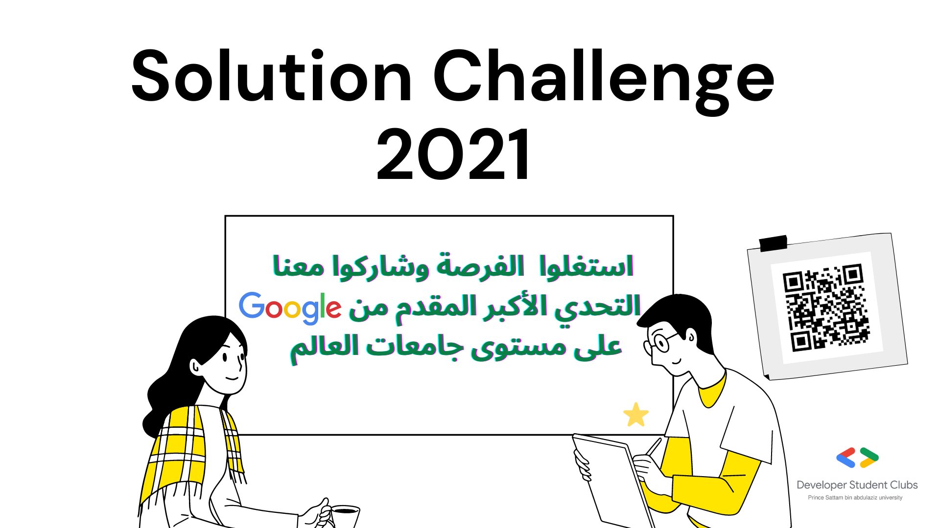 يدعو نادي (الطلبة المطورين) والذي تدعمه شركة Google العالمية بكلية هندسة وعلوم الحاسب بجامعة الأمير سطام بن عبدالعزيز لشطر الطالبات جميع طلاب وطالبات الجامعة في كافة الكليات والتخصصات والمستويات للمشاركة في التحدي العالمي الأكبرالمقدم من شركة Google بعنوان Solution Challenge 2021