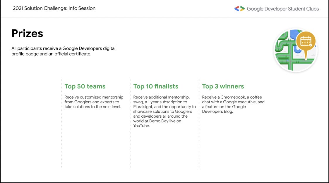 وأبان نادي (الطلبة المطورين) والذي تدعمه شركة Google العالمية بكلية هندسة وعلوم الحاسب بجامعة الأمير سطام بن عبدالعزيز أن جميع المشاركين في هذا التحدي الكبير سوف يحصلون على شهادة رسمية من قبل الشركةGoogle بإلاضافة إلى الكثير من الجوائز المرصودة للفائزين , كما سيسبق ذلك إقامته ورشة عمل للحديث وتسليط الضوء للطلاب والطالبات المشاركين فيها على آلية وطريقة وشروط وتفاصيل عمل المسابقة.