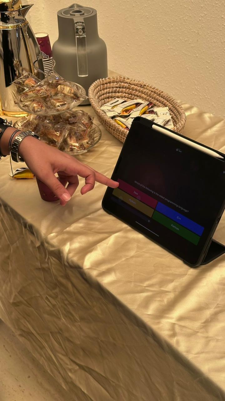 وخلال الفعالية، تم استقبال الطالبات وتعريفهن بتخصص علوم الحاسب وآلية إنشاء التطبيقات، بالإضافة إلى إجراء تحديات بين التخصصات. كما تمت الإجابة على استفسارات الطالبات حول التخصص ومتطلباته. وقد أضفى تقديم الضيافة جوًا من الود والقرب بين الطالبات، مما أسهم في خلق بيئة مريحة للتعلم.