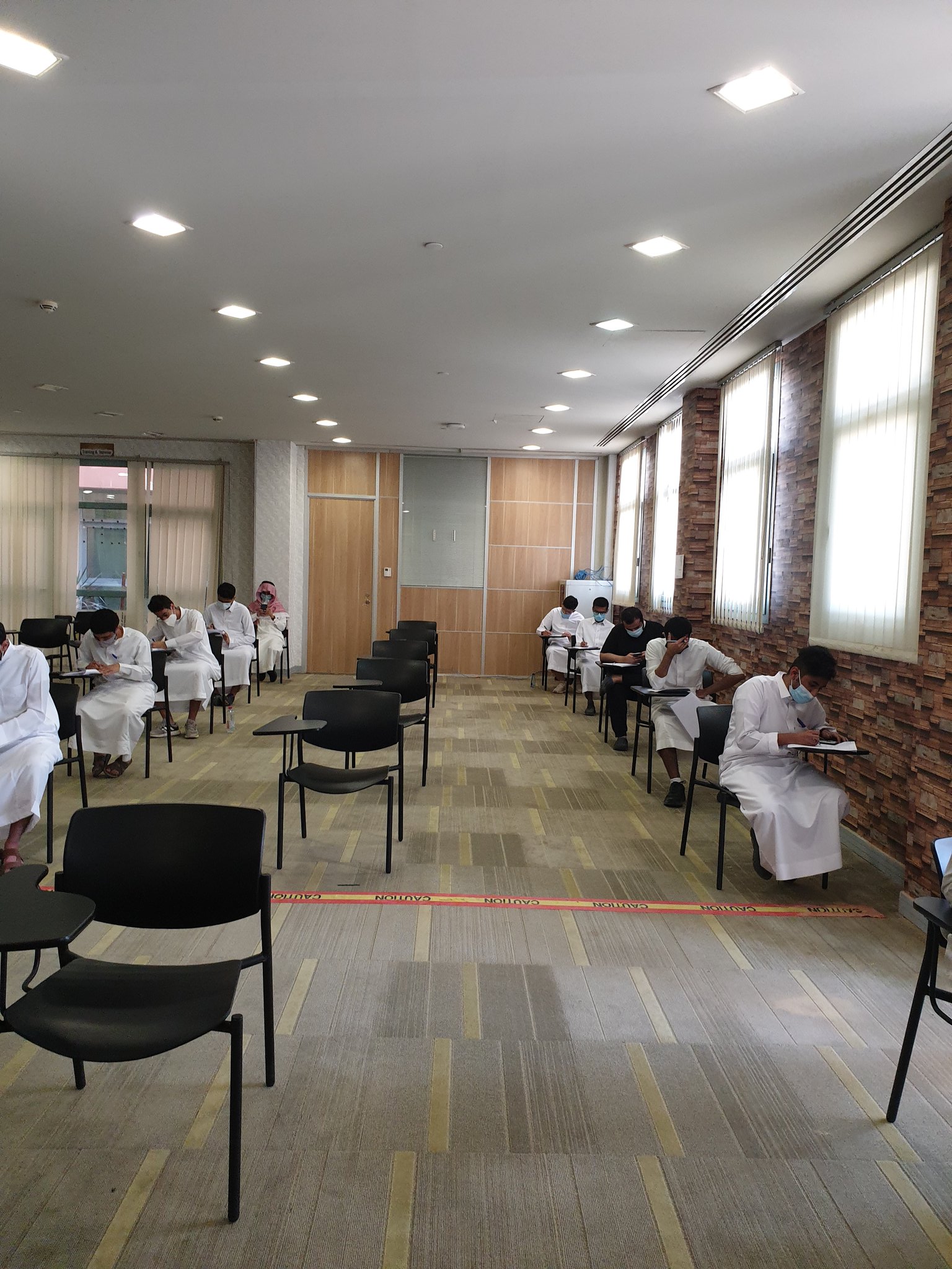 يشار إلى ان كلية هندسة وعلوم الحاسب وقبل بداية الإختبارات الفصلية الأولى للفصل الدراسي الأول الجاري 1442هـ أكملت جميع جاهزيتها وإستعداداتها المتعلقة بالإختبارات وذلك بإعادة ترتيب قاعات الإختبارات لضمان تعقيمها وتطبيق التباعد الوقائي ما بين أماكن جلوس الطلاب مع الأخذ بعين الإعتبار للكثافة العددية الحضورية والحالة الصحية للطلبة لمواجهة فيروس كورونا الجديد (covid 19) لتقديم تعليم جامعي آمن.