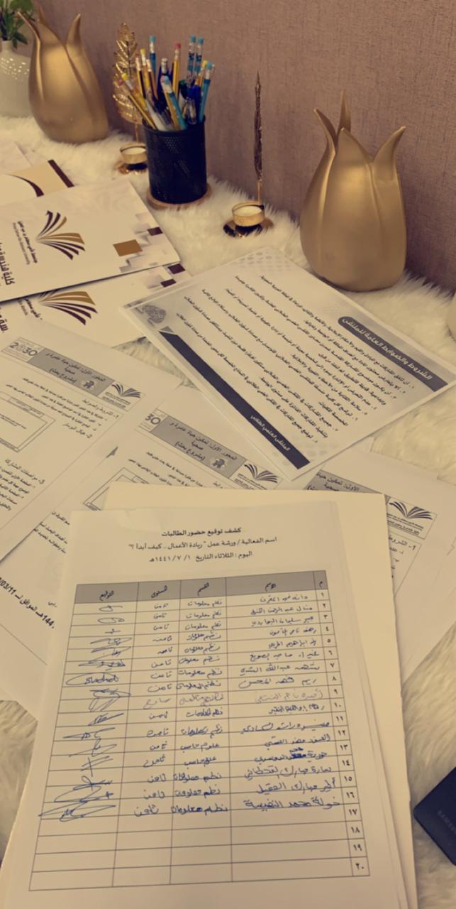 نظمت وحدة العمل الطلابي بكلية هندسة وعلوم الحاسب ورشة عمل بعنوان " ريادة الأعمال .. كيف أبدأ ؟" قدمتها د. خضرة حسن يوم الثلاثاء الموافق 1-7-1441هـ في مسرح الكلية من الساعة 12 م إلى 1 م .تضمنت الورشة المحاور الاتية:ما هي ريادة الأعمالصياغة فكرة المشروعالعوامل الداعمة لريادة الأعمالعوامل نجاح المشروعتحليل السوقحيث أن الدورة قد شهدت حضور عديد الطالبات للدورة وقد نالت استحسانهم و رضاهم .