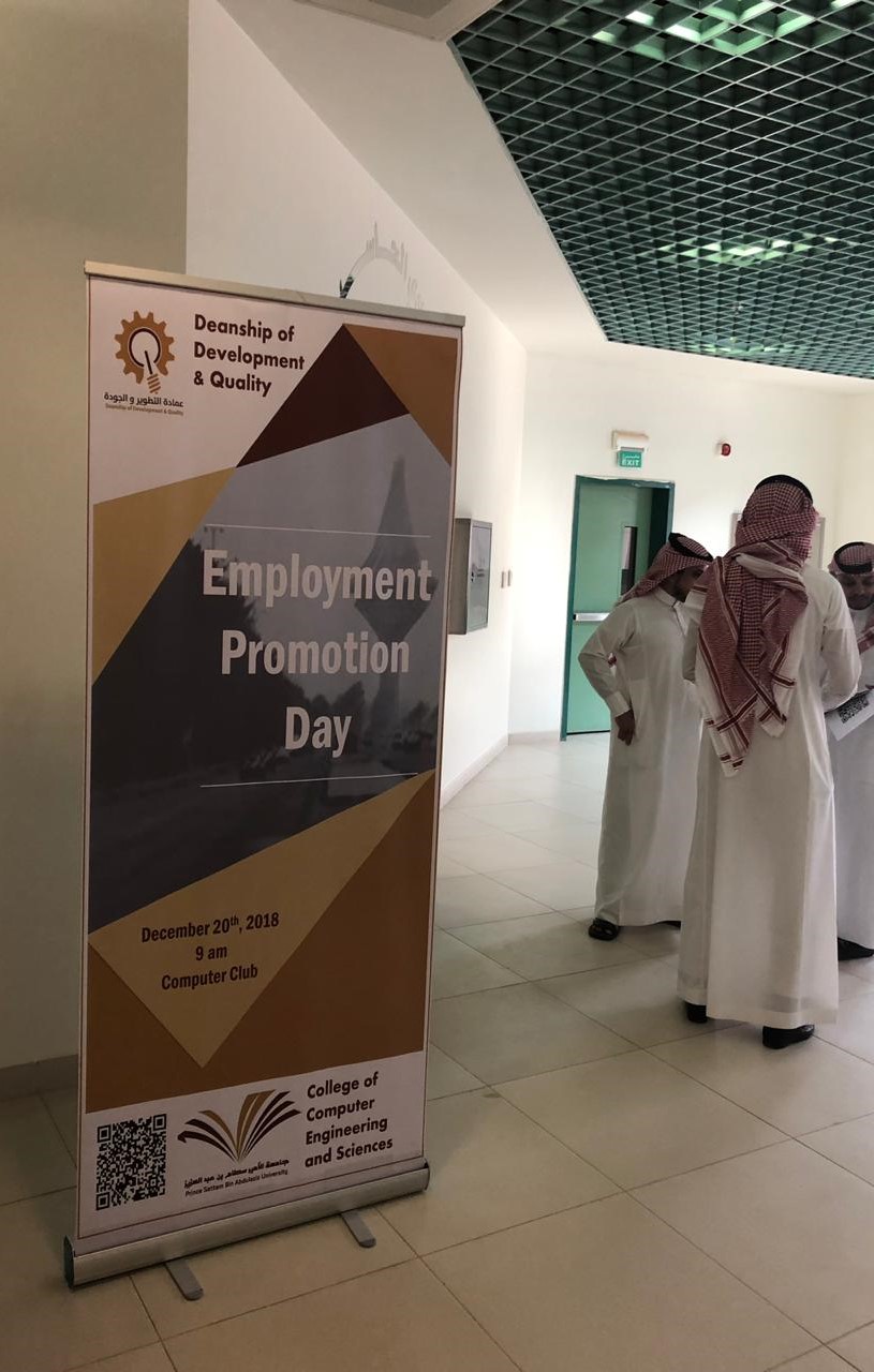 نظمت عمادة التطوير الجودة بالتعاون مع كلية هندسة وعلوم الحاسب النسخة الأولى من برنامج "يوم التسويق الوظيفي" وذلك في يوم الخميس الموافق 13/04/1440هـ في كلية هندسة وعلوم الحاسب والذي يتيح للخريج تقييم مهاراته في اجراء المقابلات الشخصية، واعداد السير الذاتية، والمهارات المطلوبة لسوق العمل حيث تقوم العمادة بالتسويق والتواصل المباشر مع القطاع الخاص للمرشحين على الوظائف المطروحة وإتاحة الفرصة لدخول المقابلة الشخصية اضافةً الى تطوير من لم يتم ترشيحه حيث يعطي المتقدم تقرير عن نقاط القوة ونقاط الضعف، مع عرض دورات خاصة للمهارات يستطيع الخريج الاستفادة منها للمنافسة بالنسخة الثانية من يوم التسويق الوظيفي كما يساعد القطاع الخاص والعام في استخدام موارد الجامعة من أعضاء هيئة تدريس في فرز المتقدمين بدون تكلفة مادية لها والنظر الى الخريجين من زوايا مهمة في طرق القياس مثل مهارة التحدث، الثقة بالنفس، التعليم الذاتي المستقل والذكاء الاجتماعي كما يسمح للكلية معرفة احتياج سوق العمل وتطوير البرامج الاكاديمية الحالية وبناء سمعة جيدة للجامعة في سوق العمل والمساهمة في تقييم مخرجات البرامج ومشاركة الخريج في بناء البرامج وبناء علاقة معه وتطويره والاستثمار به بعد التخرج.وفي نهاية البرنامج أبدى عدد من الخريجين عن سعادتهم بإقامة مثل هذه البرامج والتي تساعدهم في الحصول على الفرص الوظيفية المتعددة، حيث حرصت الكلية في إقامة مثل هذه الفعاليات على مد جسور التواصل مع خريجي الكلية لتأدية دورها في تسويق مخرجاتها للقطاعين العام والخاص.