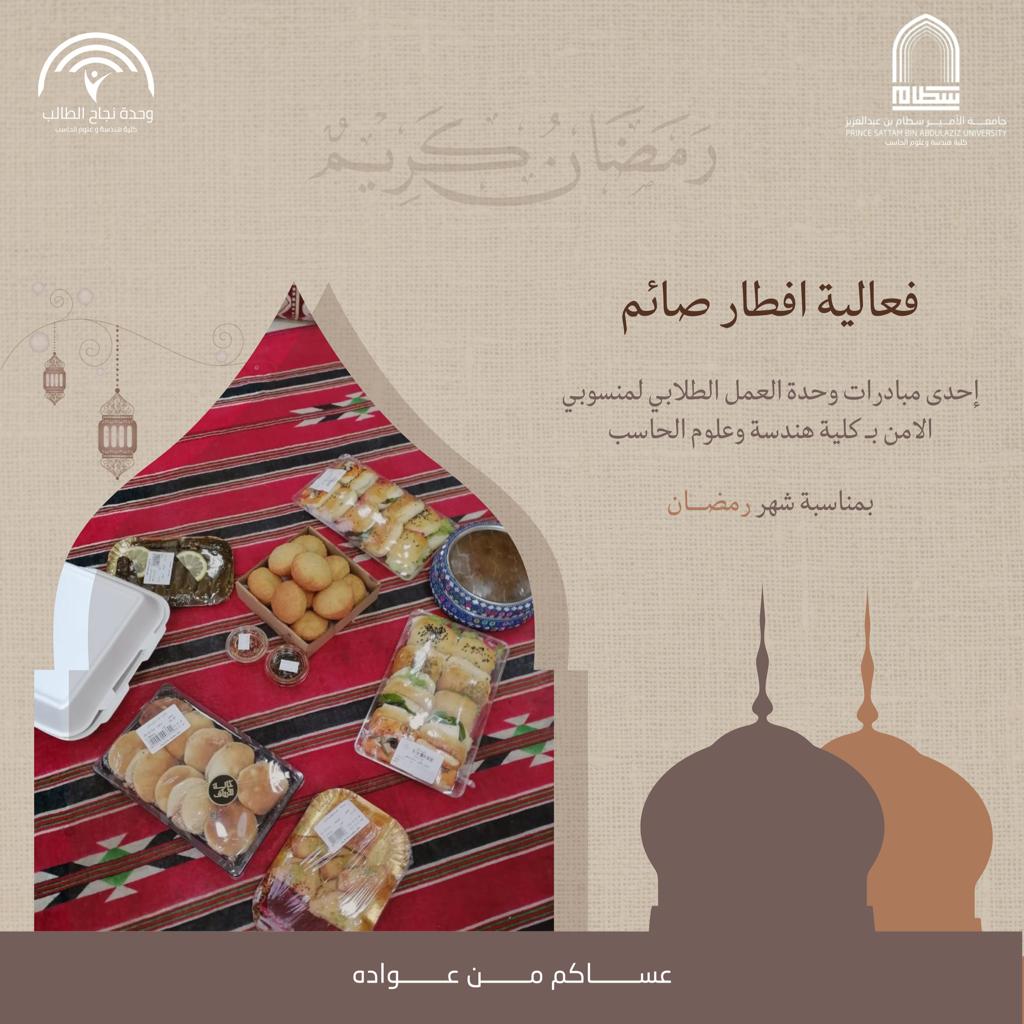 The Student activio Unit organized a fasting breakfast initiative for the security staff in the College of Engineering and Computer Science, in order to revive the Sunnah and take advantage of the blessed month of Ramadan by supplying acts of worship and earning the wages of those who fast