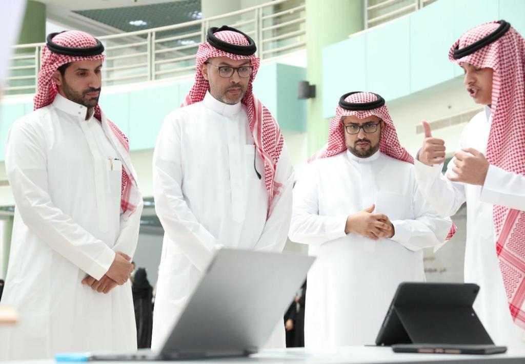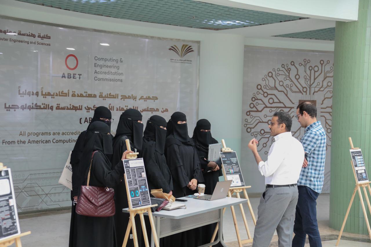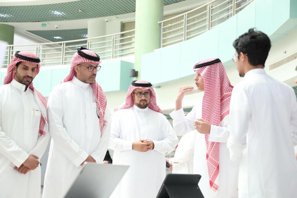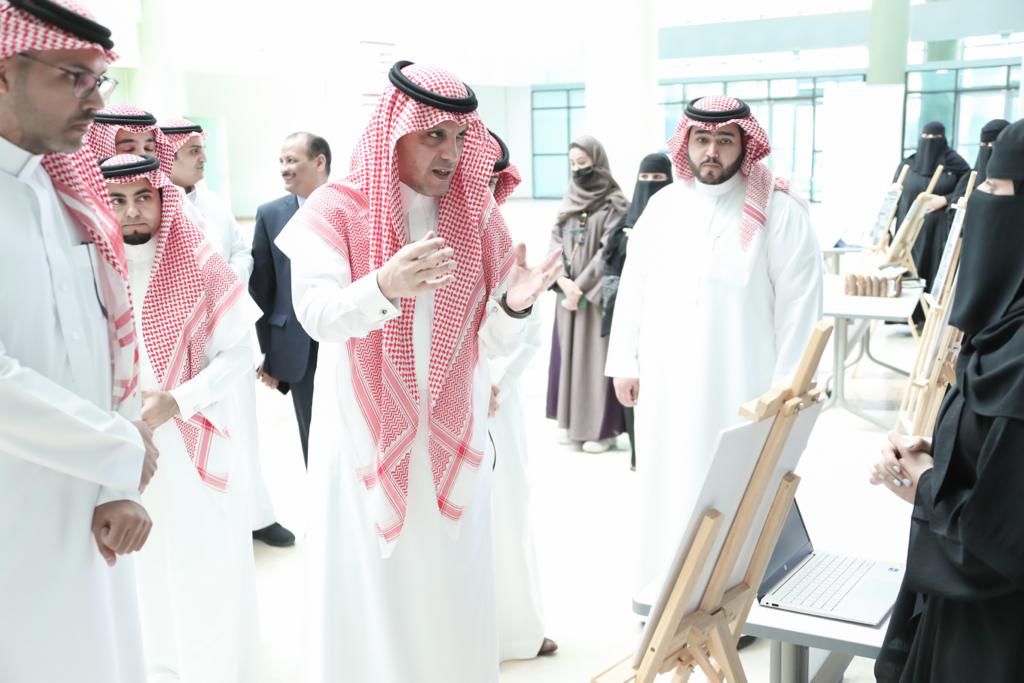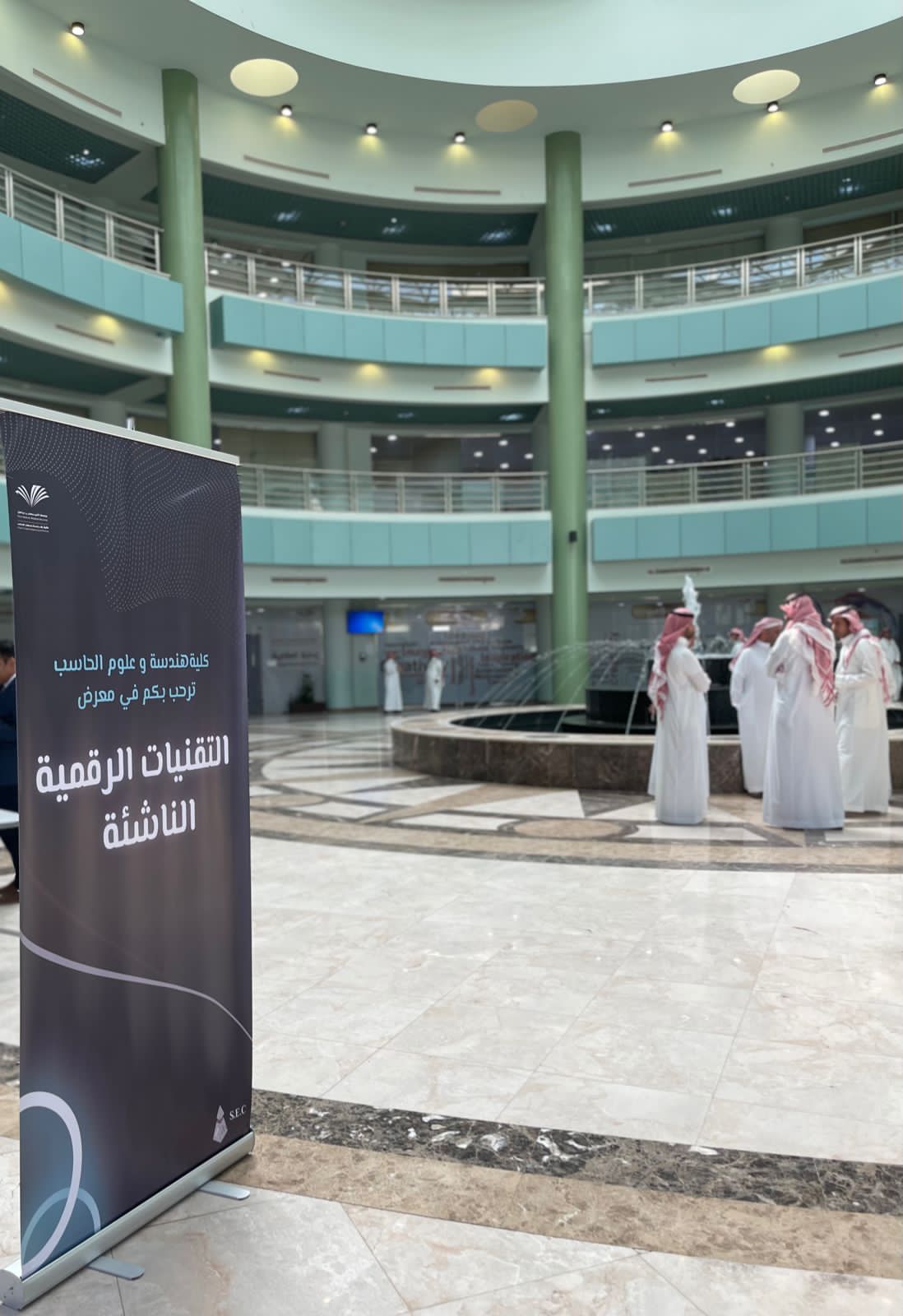 The Department of Software Engineering, represented by the College of Engineering and Computer Science, organized an exhibition of emerging digital technologies for students of the College of Engineering and Computer Science, on Wednesday morning, on Rabi’ al-Thani 15, 1444 AH, corresponding to November 9, 022 CE, in the college lobby in the presence of the President of the University, Prof. Dr. Rahman bin Hilal Al-Talhi.