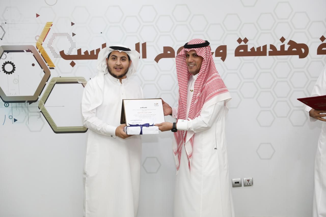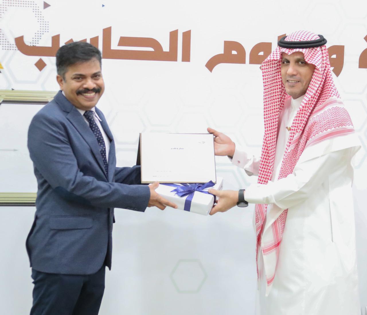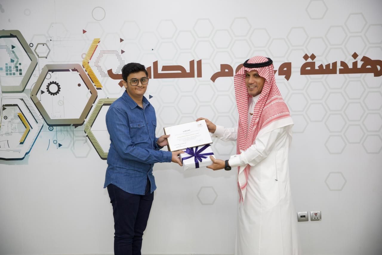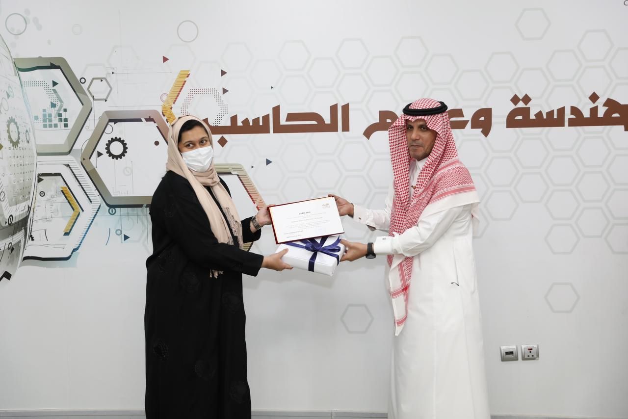 The exhibition related to innovative projects for students of the Emerging Digital Technologies course, in which innovative projects were presented using existing technologies (artificial intelligence, cybersecurity, Internet of things and Blockchain, as well as data protection, drones and robots). The Software Engineering Department aims to support male and female students, especially in innovative projects in emerging digital technologies. During the visit to the exhibition, the president of the university honored the NARS team, student Nayef Al-Saif, student Arman Ziad and Dr. Shabana Ziyad, for winning first place in the Artificial Intelligence Hackathon for Health Care #IAU_HPC22, which was organized by the College of Computer Science and Information Technology at Imam Abdulrahman bin Faisal University. Success