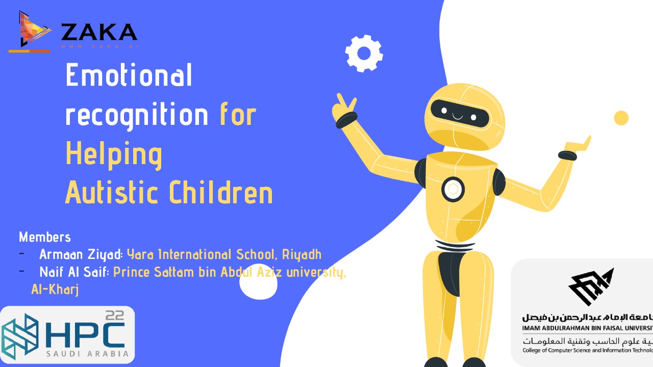 The organizer is from the College of Computer Science and Information Technology at Imam Abdulrahman bin Faisal University, and the participation was by providing innovative solutions and ideas that help children with autism by recognizing feelings. Emotion Recognition for Helping Autistic Children