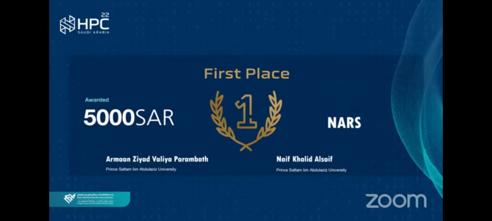 As an extension of the successive achievements of the employees of the Faculty of Engineering and Computer Science at Prince Sattam bin Abdulaziz University, the student / Nayef Al-Saif from the Department of Computer Science, with the participation of the student / Arman Ziyad, represented by the NARS team, achieved the first place in the Artificial Intelligence Hackathon for Health Care #IAU_HPC22