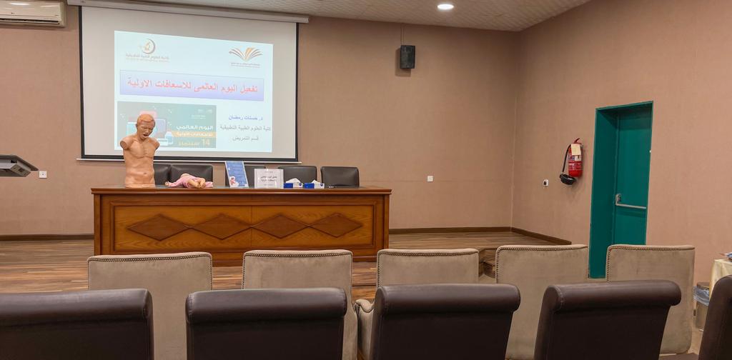 The leadership of the College of Engineering and Computer Science, Director of Administration, Sana Al-Huwaishel, on behalf of the Vice Dean, Dr. Elham Kariri, the Public Relations and Media Unit, in cooperation with the Community Unit of the College of Applied Medical Sciences, organized a workshop on the World First Aid Day on September 12 of each day